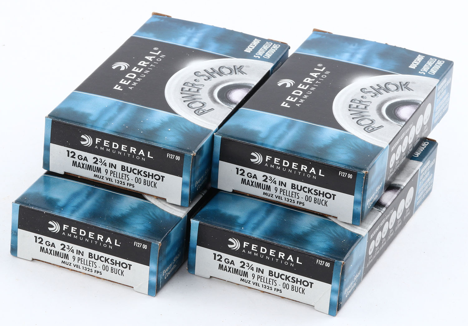 | Lot of 4 Federal, 12ga., Appears Full, 2 3/4'', shot size 00 B...