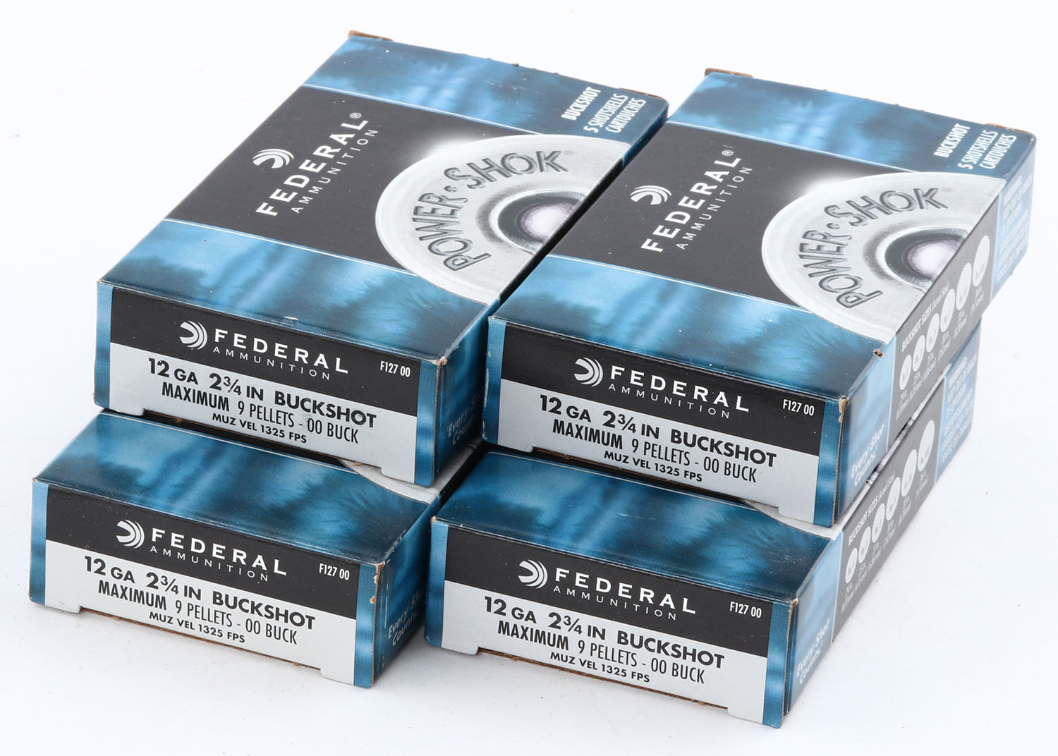 | Lot of 4 Federal, 12ga., Appears Full, 2 3/4'', shot size 00 B...