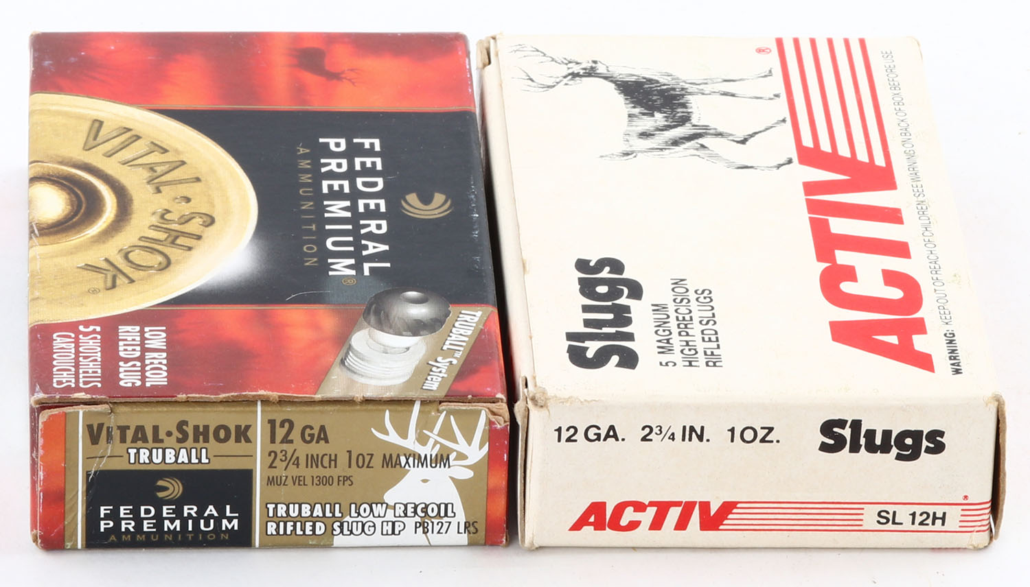 Lot of 2, Mixed Manufacture, 12ga., Appears Full, shot size Rifled Slugs, Shotshell boxes. Grade: Very Good - Value: 10 to 30