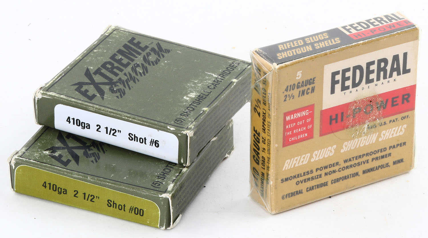 Lot of 3, Mixed Manufacture, Appears Full, shot size 00, 6 & Rifled Slugs, Shotshell boxes. Grade: Very Good - Value: 10 to 30