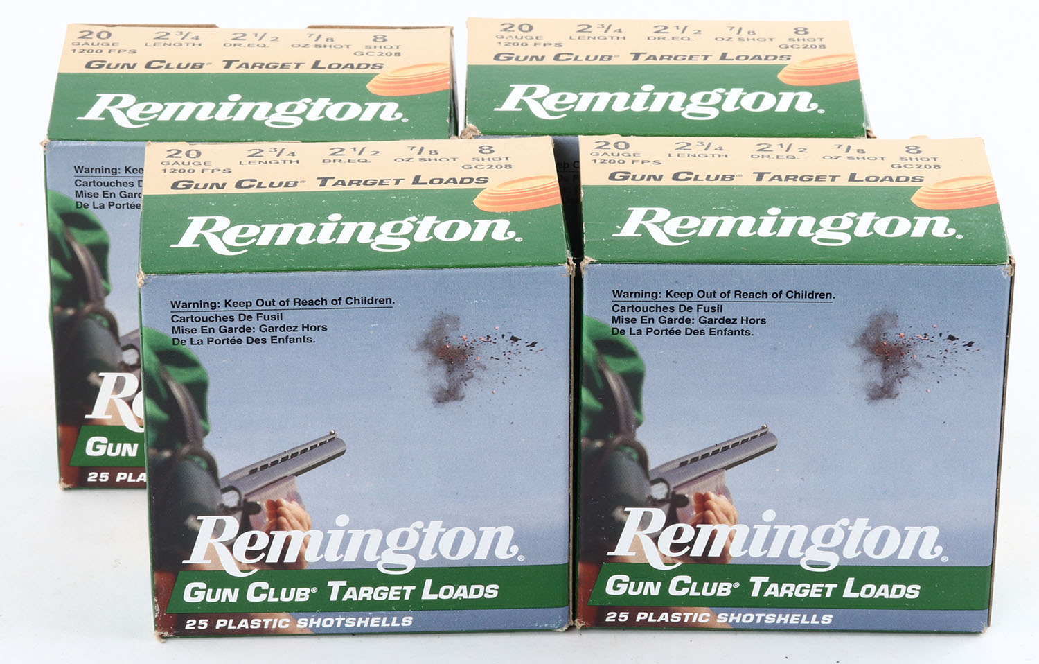 Lot of 4 Remington, 20ga., 1pc., shot size 8, Appears Full, multi-colored boxes. Grade: Excellent + - Value: 10 to 40
