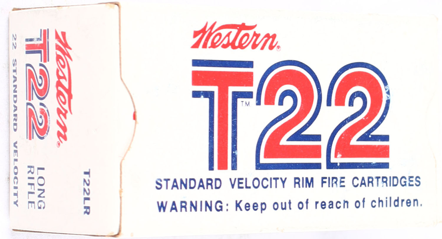 Western, T22, .22 Long Rifle, Standard Velocity, RHWeb: WCC-53A, Full, 1pc. White red & black box, box is solid with excellent color, very minor shelf wear, very minor edge & corner wear, end flaps are solid, ammo is excellent to minty. Grade: Excellent - Value: 10 to 15