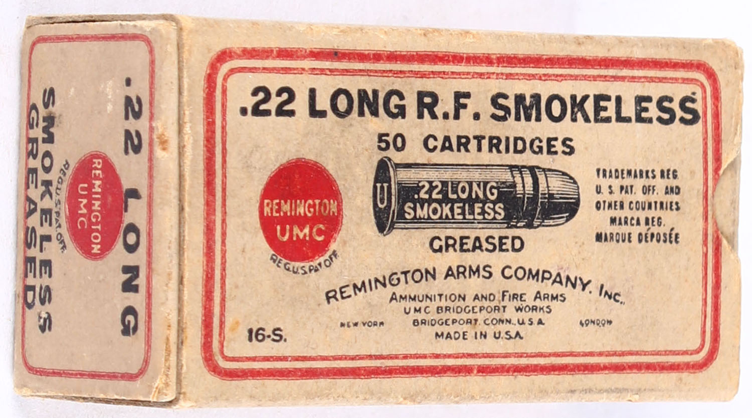 | REM-UMC, R.F. Smokeless Cartridges, .22 Long, Greased, RHWeb: RE...