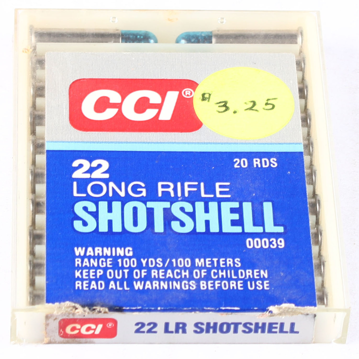 CCi, SHOTSHELL, .22 Long Rifle, Full, 1pc. Clear box is solid with excellent label, ammo is minty. Grade: Excellent ++ - Value: 6 to 20