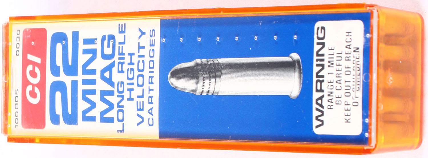 CCi, Mini Mag, .22 Long Rifle, 100 count, Standard Velocity, FULL & SEALED, 2pc. yellow plastic tray with label, box is MINT with minty color, label is intact, ammo appears minty. Grade: MINT - Value: 10 to 20