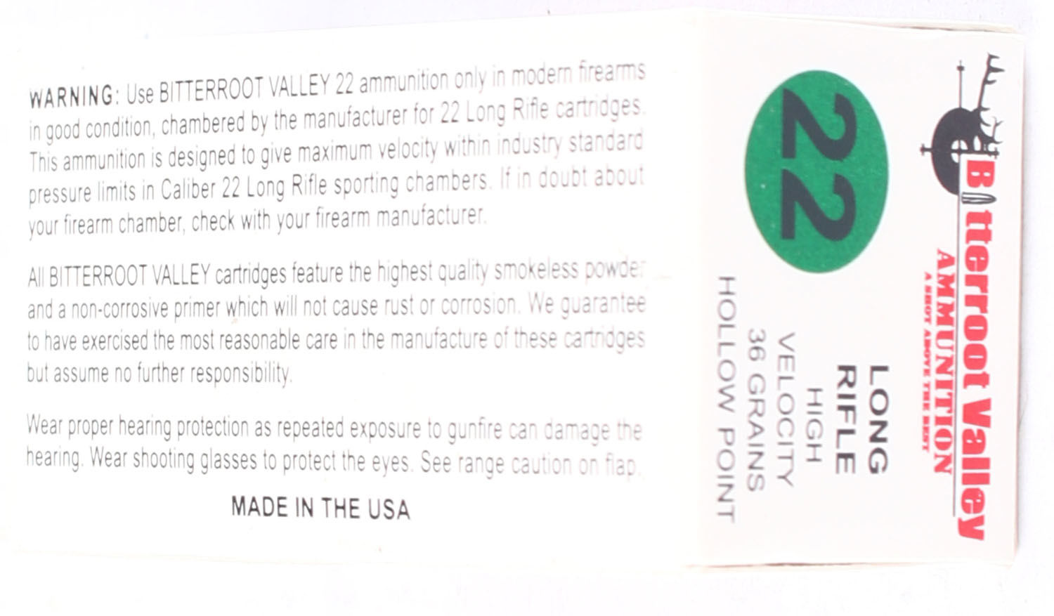 | Bitterroot Valley, .22 Long Rifle Hollow Point, High Velocity, R...