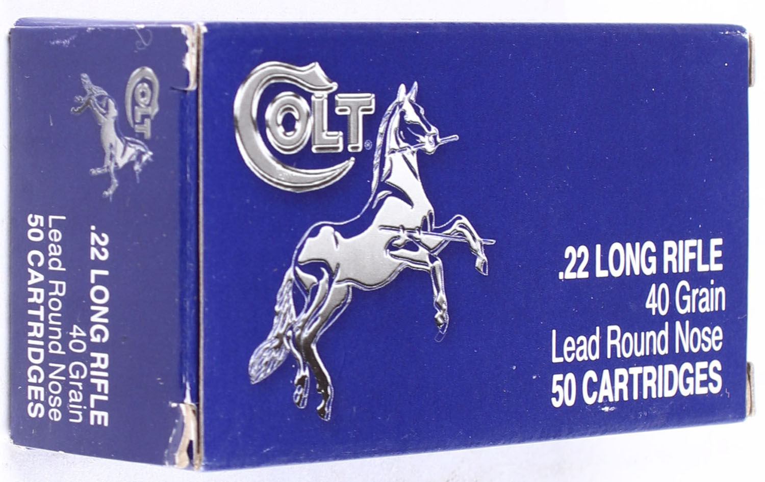 Aguila, Colt, .22 Long Rifle, RHWeb: IT-9 LR-1, Full, 1pc. Blue & white box, box is MINT with mint color, corners are sharp, edges are crisp, end flaps are rigid, ammo is minty. Grade: MINT - Value: 24 to 36