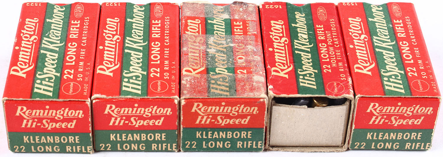 Remington, Lot of (5) boxes, (4) boxes appear full, (1) box appears Partial 46rds. Grade: Excellent - Value: 20 to 60