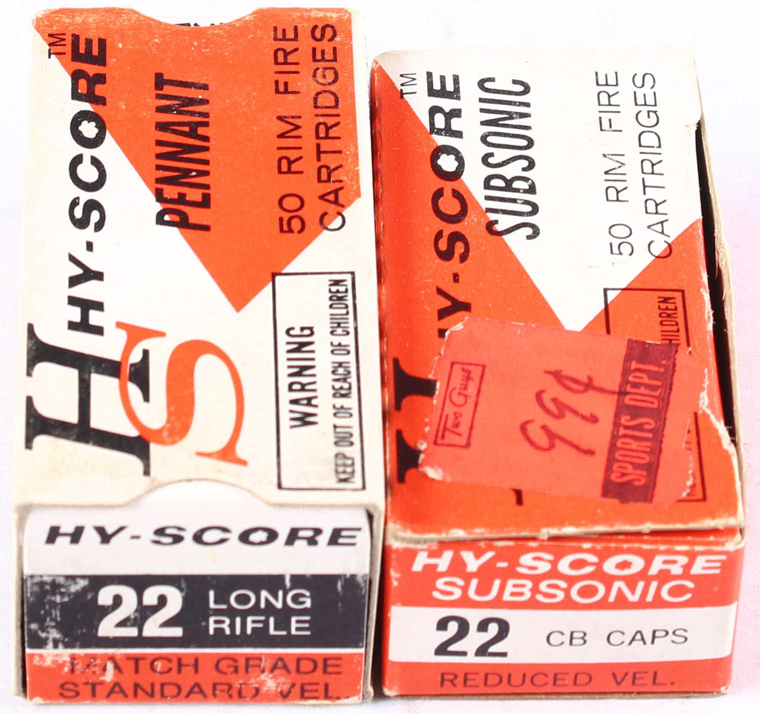 Hy-Score, Lot of (2) boxes, (1) box appears full, (1) partial box 40rds. Grade: Excellent - Value: 10 to 20
