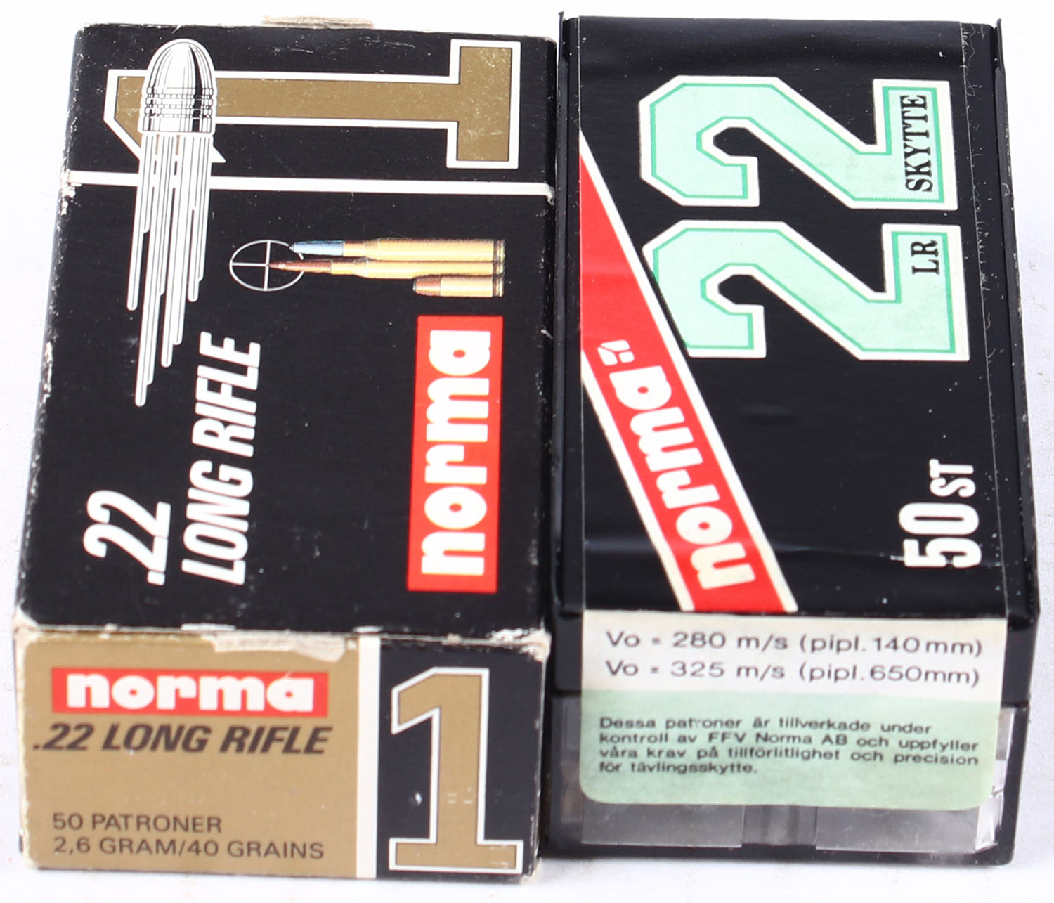 Norma, Lot of (2) boxes, (1) box Full & Sealed, (1) box Partial 46rds. Grade: Very Good - Value: 8 to 30