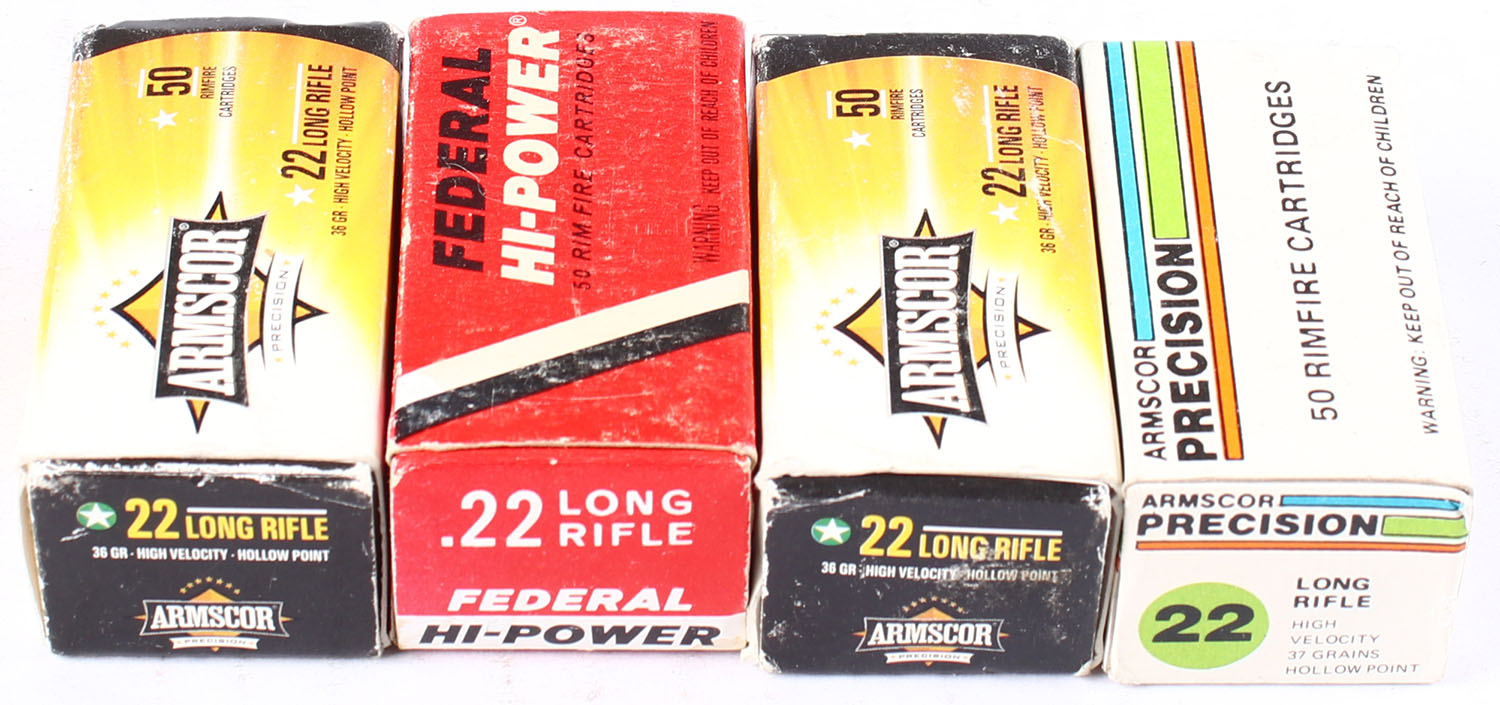 Mixed Mfg., Lot of (4) boxes, (2) boxes appear full, (2) Armscor boxes are Partial about half full. Grade: Very Good - Value: 4 to 10