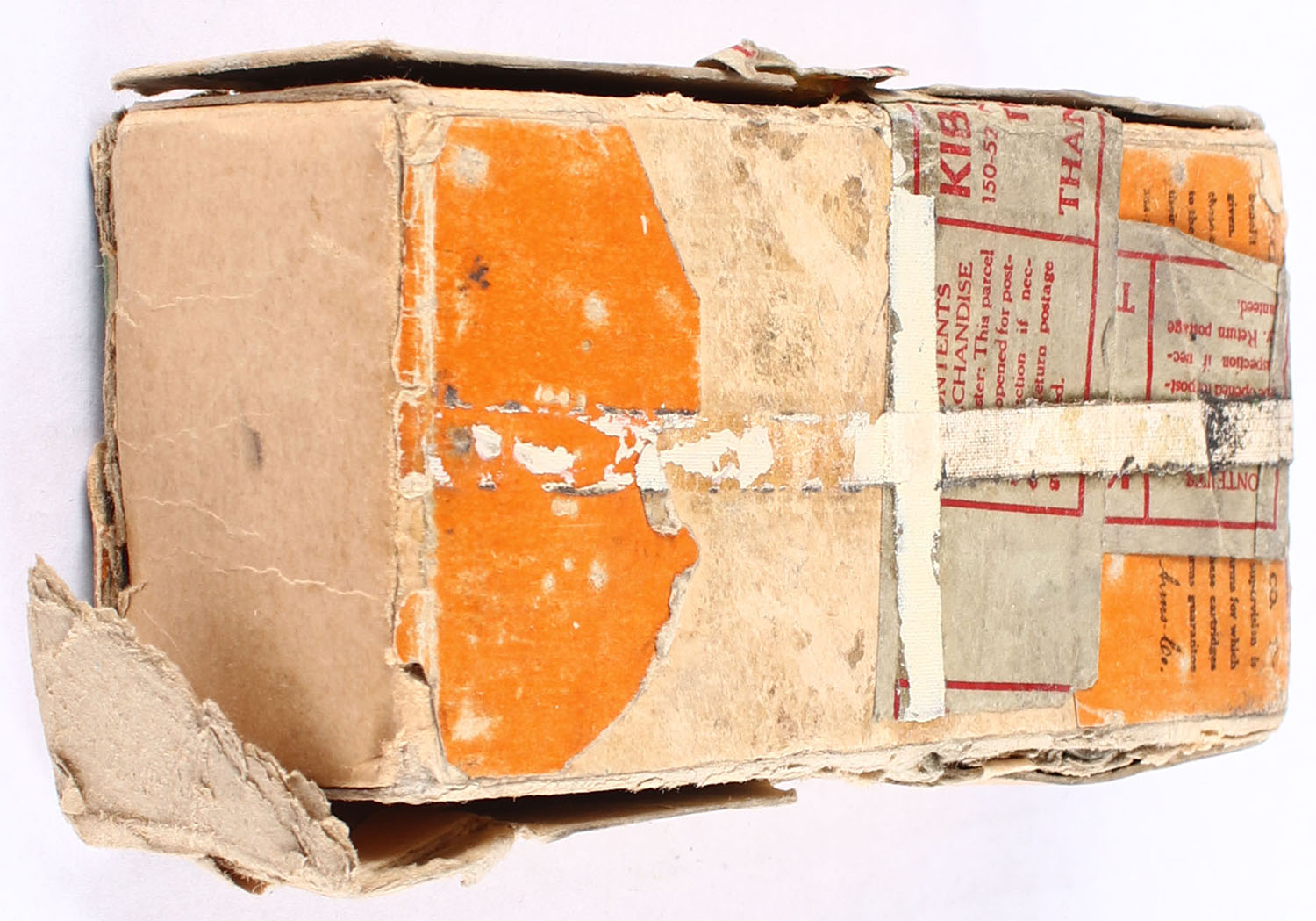 Winchester, .44 Colt, 210 Grain Lead Bullets, Partial 44rds., 2pc. Buff box with green & orange wraparound label, box ibis tattered with seam splits & one end missing, shows scuffing, label is ok, ammo is very good. Grade: Good ++ - Value: 50 to 150