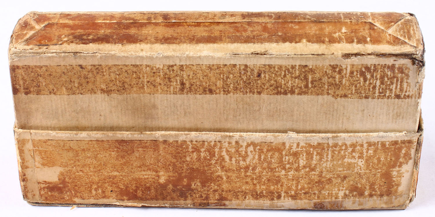 Winchester, Smokeless Cartridges, .45-70-405, Soft Point Cartridges, Full, 2pc. Buff box with orange labels, box is solid with good color, age soiling, staining, tape all over lid, edge & corner wear, labels are intact, ammo is very good. Grade: Good - Value: 30 to 90