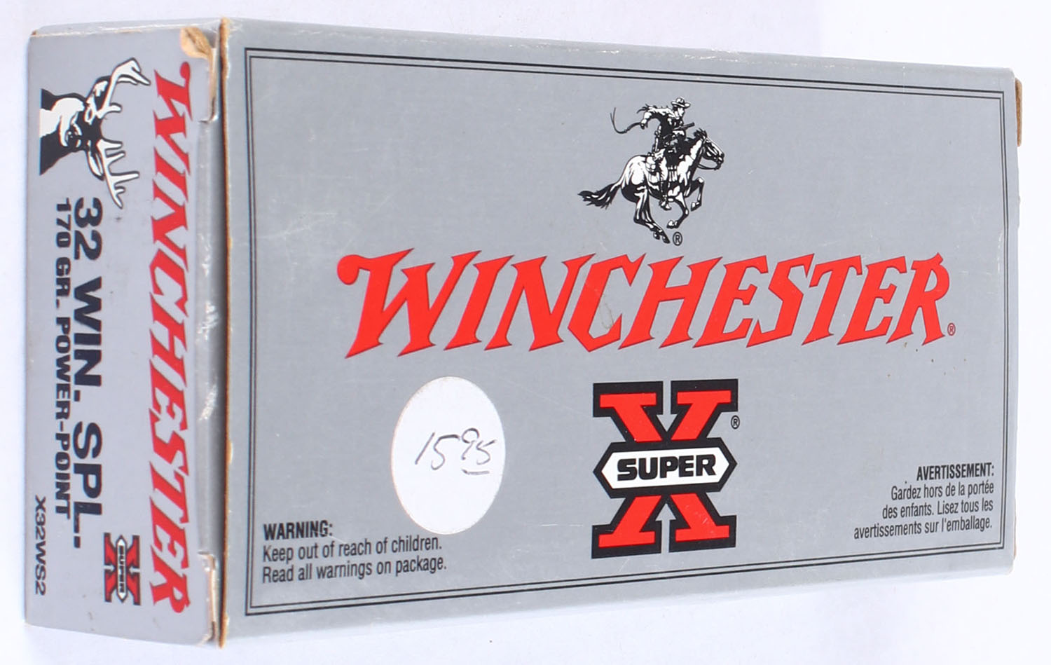 Winchester, Super-X, .32 Winchester Special, 170 Grain Power-Point, Full, 1pc. Silver & red box, box is solid with great color, minor shelf wear, has sticker to front, end flaps are solid, ammo is excellent. Grade: Excellent - Value: 50 to 75