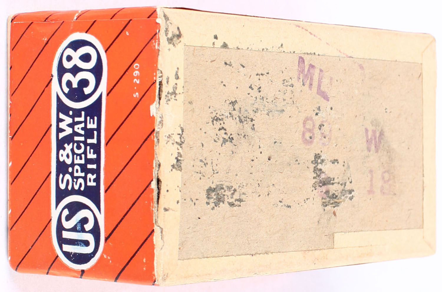 U.S., Smokeless Central Fire, .38 Smith & Wesson Special Rifle, FULL & SEALED, 2pc. Buff box with orange & blue label, box is very solid with excellent color, has very minor shelf wear wear with minor color fading to top, label is intact. Grade: Excellent + - Value: 20 to 40
