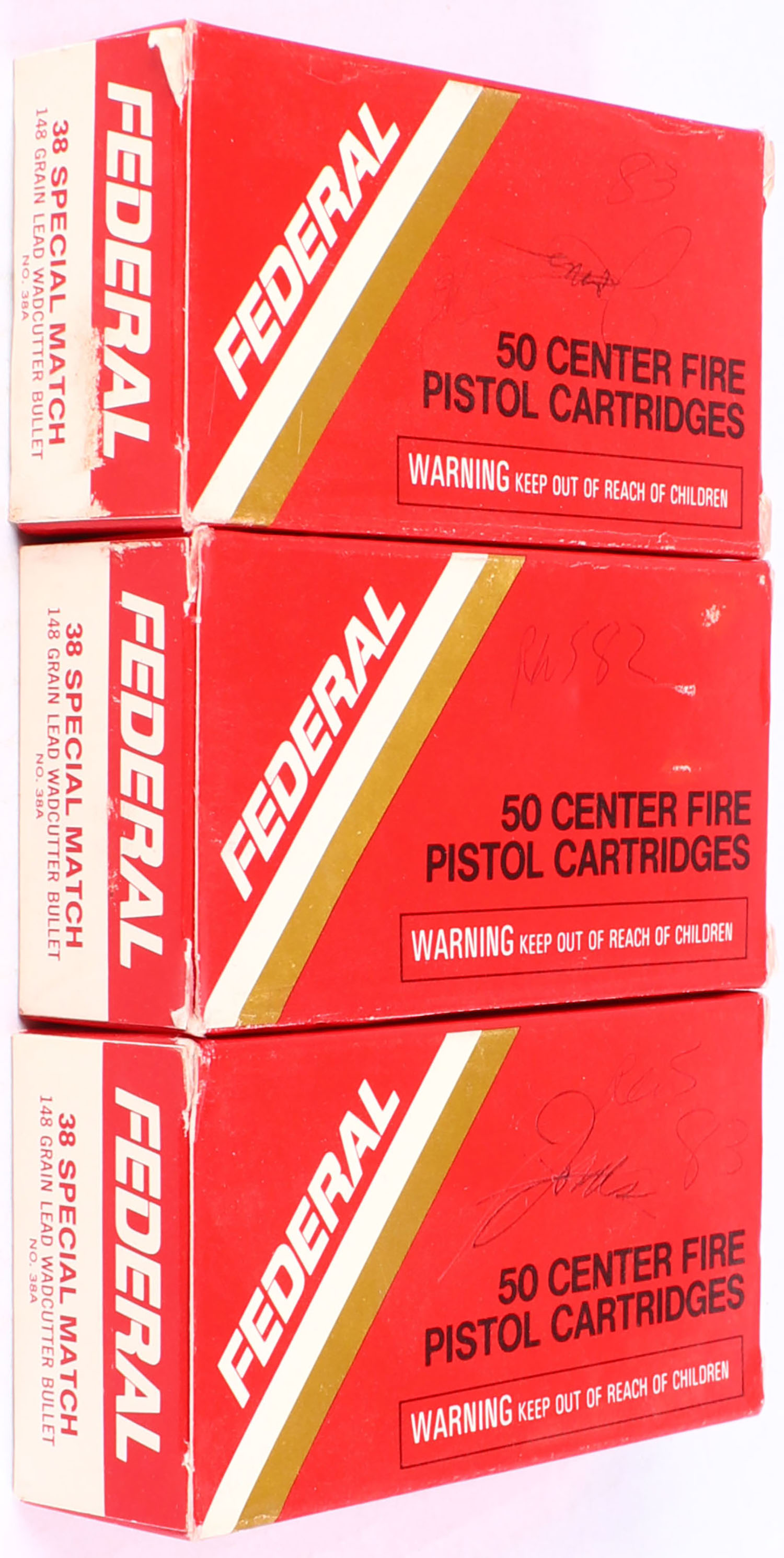 | Lot of 3 Federal, 38 Special Match, 148 Grain Lead WC, Full, 1pc...