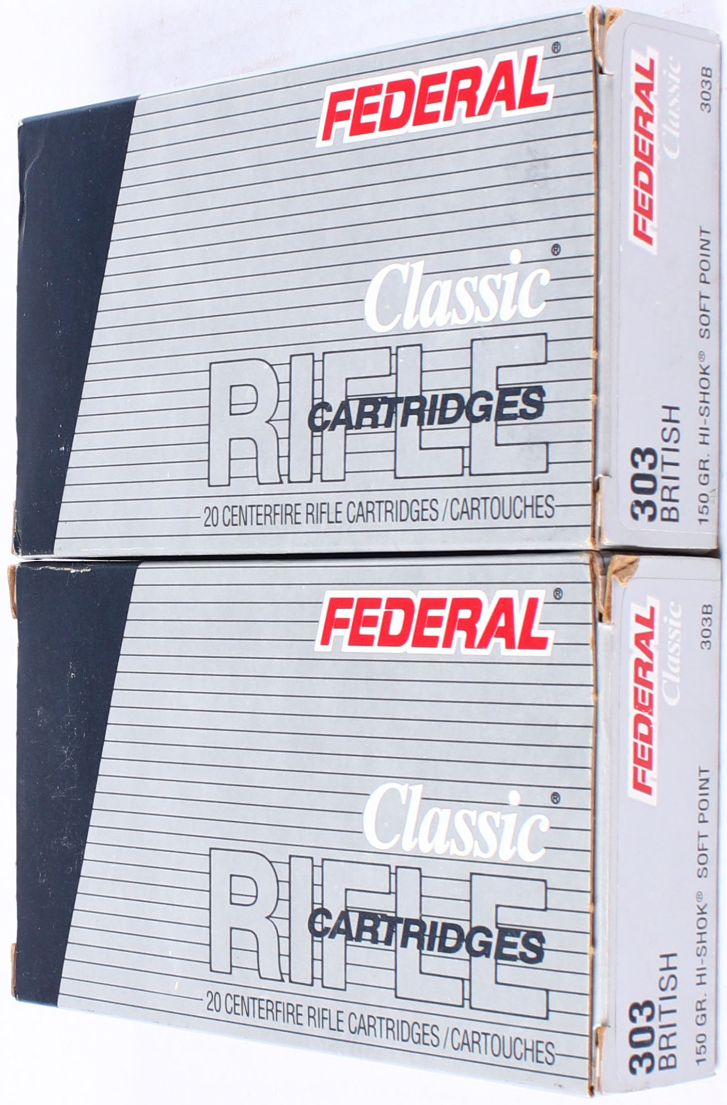 | Lot of 2 Federal, classic, .303 British, 150 Grain H-shock SP, F...