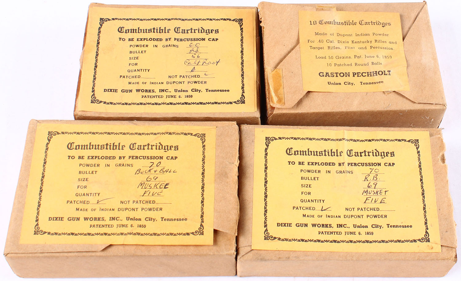 | Combustible Cartridges, Lot of (4), made by Dixie Gun Works, Pat...