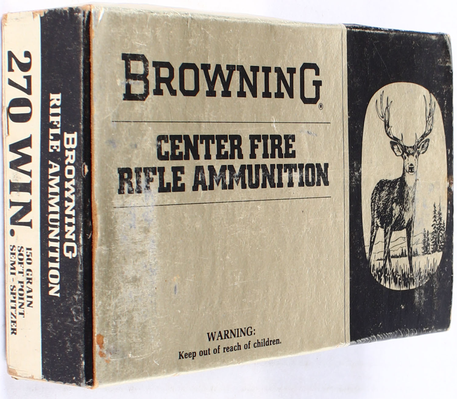 Browning, 270 Win, 150 Grain Soft Point Semi-Spitzer, Full, 1pc., multi-colored box, box is solid with light shelf wear, Ammo is excellent. Grade: Excellent - Value: 60 to 90