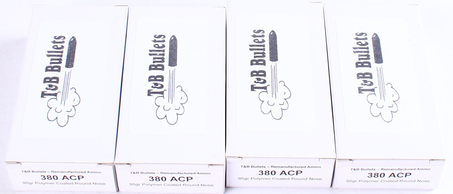 | T&B Bullets, Lot of (4), .380 ACP ammo boxes, Remanufactured Am...