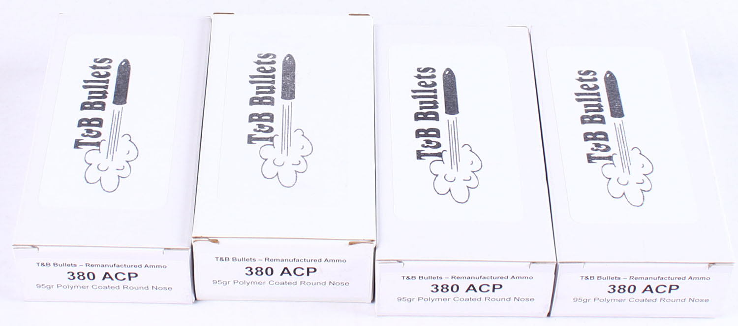 | T&B Bullets, Lot of (4), .380 ACP ammo boxes, Remanufactured Am...