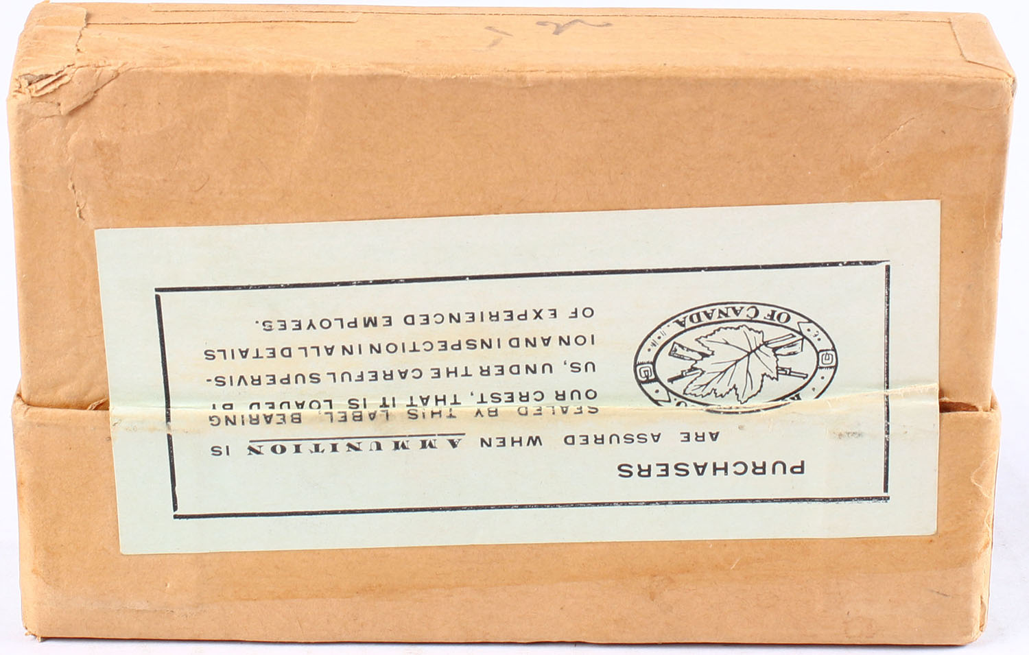 Ross Rifle Co., .280 Ross Sporting, 145 Grain Expanding Steel Jacket, smokeless, FULL & SEALED, 2pc., buff box with green label, box is very solid with minor shelf wear. Grade: Excellent + - Value: 50 to 200