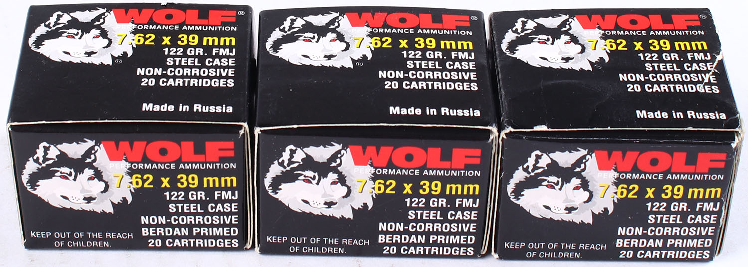 | Wolf, Lot of (3), 7.62x39mm, 122 Grain FMJ Steel Case, Full (60r...