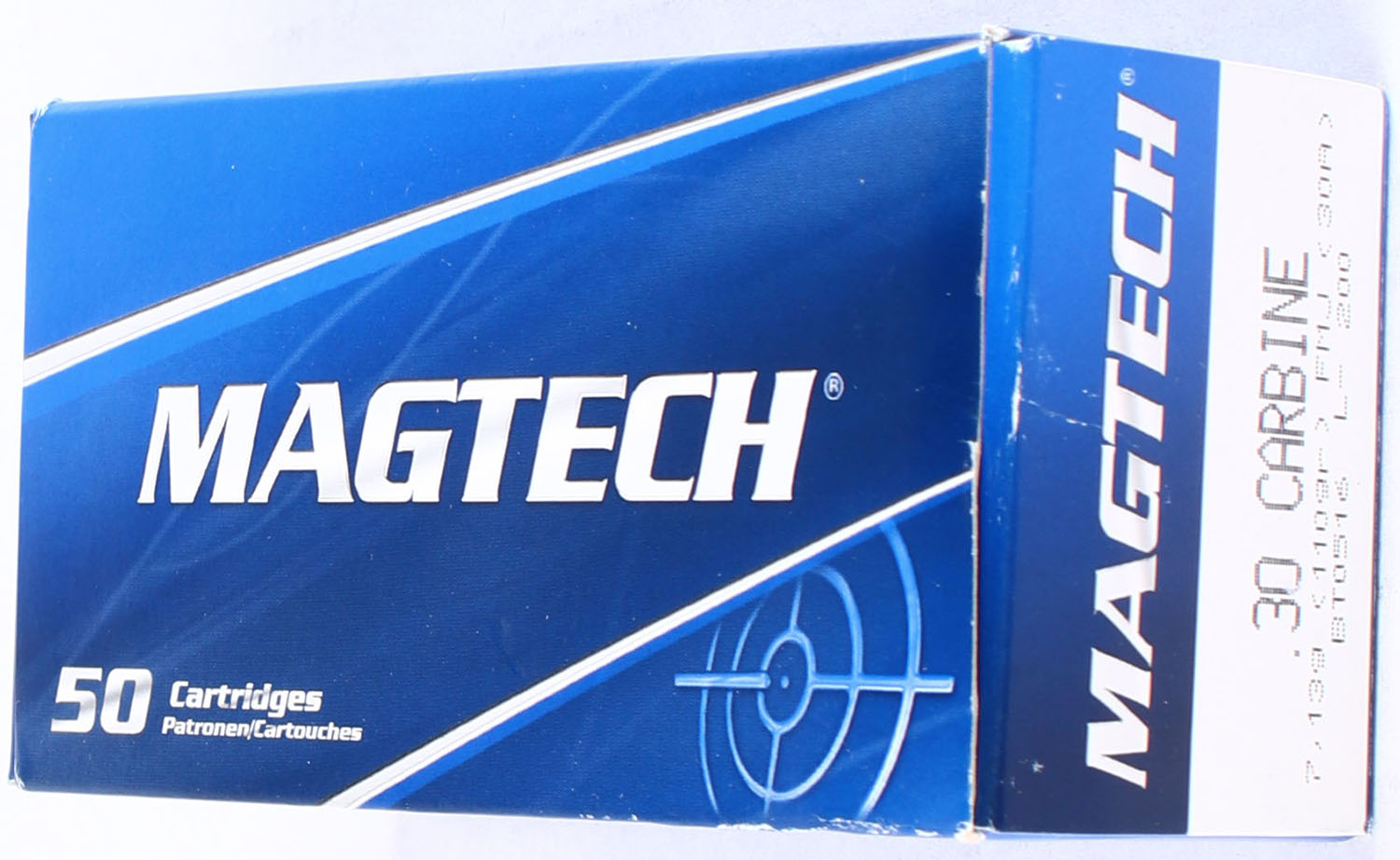 Magtech, .30 Carbine, 110 Grain FMJ, Full, 1pc., Multi-colored box, box is solid, ammo is excellent. Grade: MINT - Value: 30 to 50