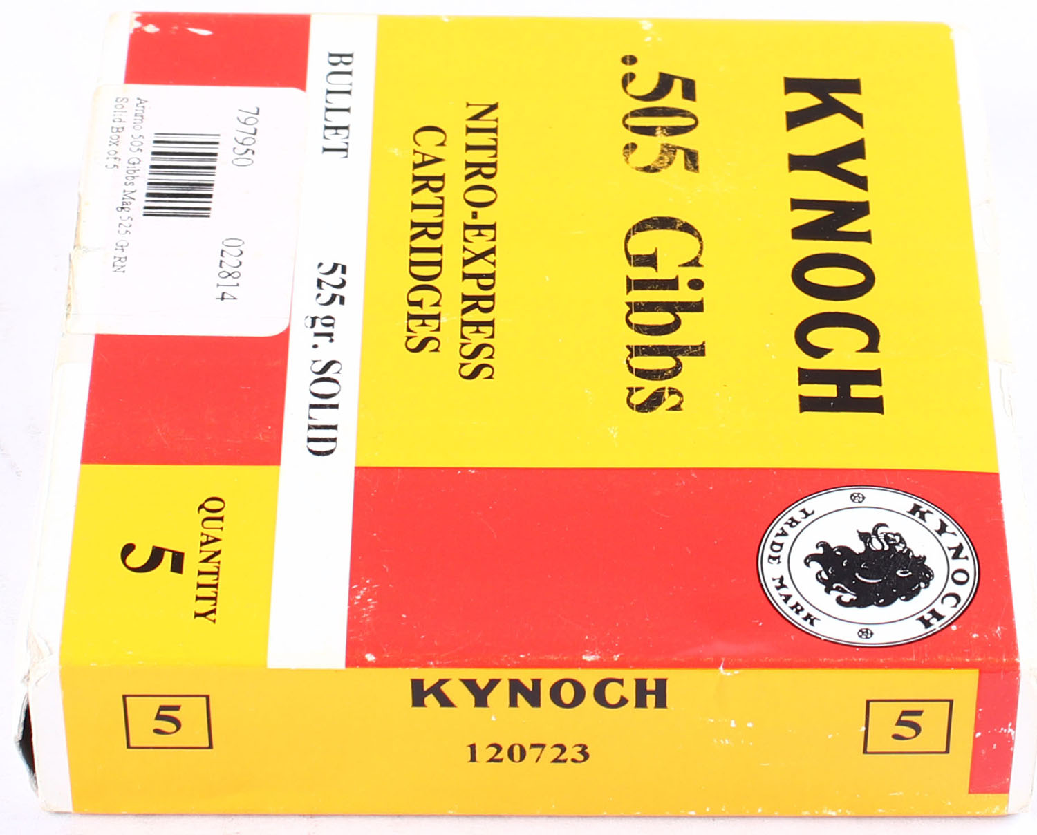 Kynoch, Nitro-Express, .505 Gibbs, 525 Grain Solid, FULL & SEALED, 1pc., Multi-colored box, box is solid with excellent color. Grade: Excellent - Value: 80 to 120