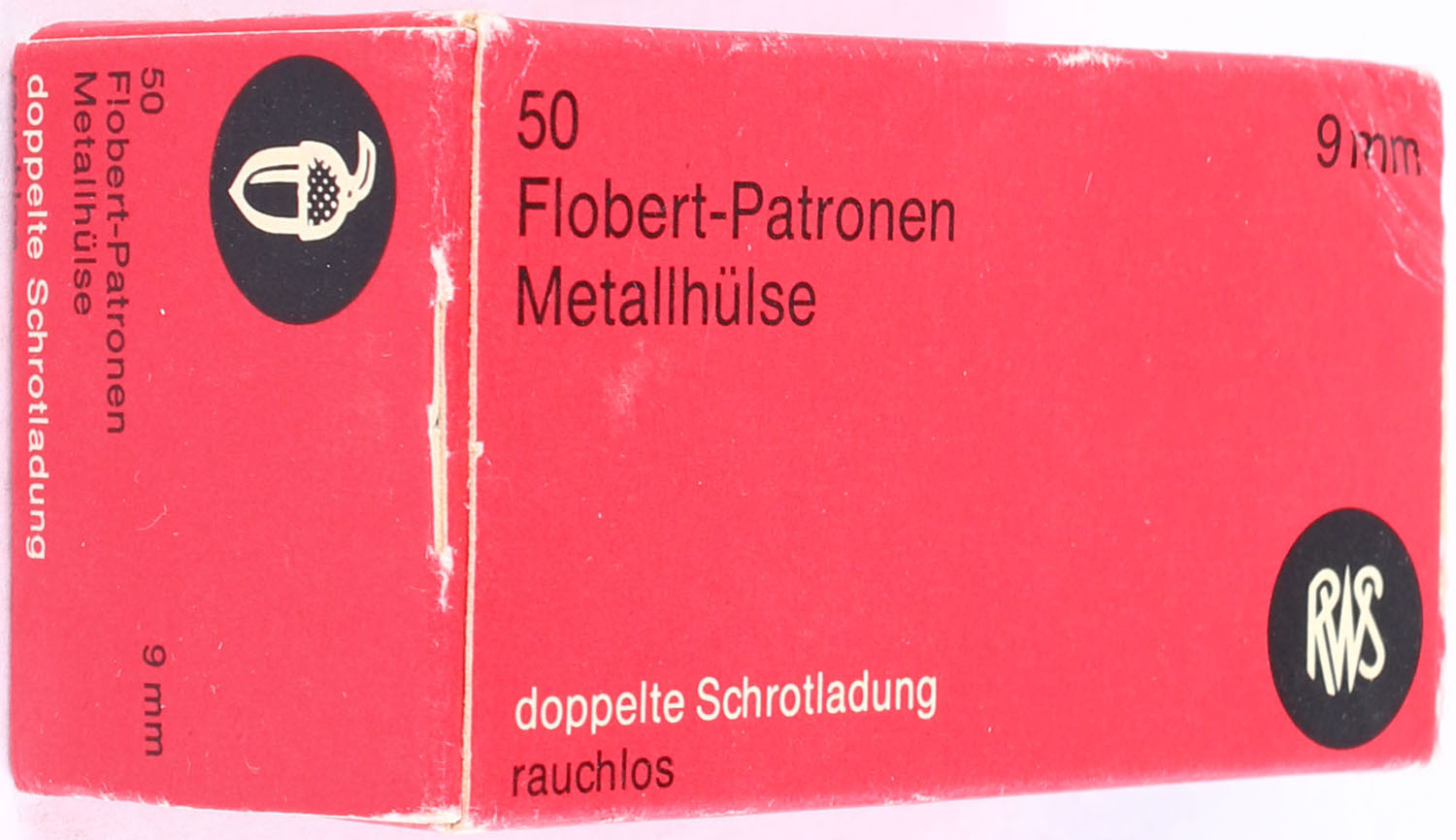 RWS, 9mm, Flobert Cartridges Metal Case, Full, 1pc, Red box, box is very solid, ammo is mint. Grade: Excellent ++ - Value: 10 to 40