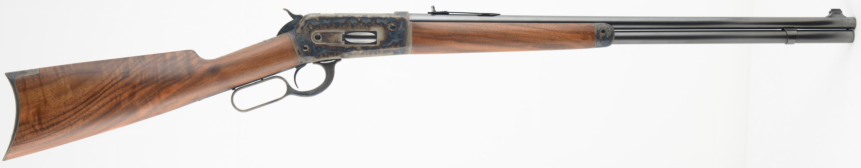 Winchester, Model 1886, .33 W.C.F., MFG. 1903, SN: 131040, Lever Action Rifle, 24'' Round barrel, Full mag. This rifle has been fully & professionally restored to overall excellent. The straight grip wood stocks are minty, with virtually no handling marks to the excellent finish. The wood displays very nice upgraded layered grain. The metal blue finish on the barrel & mag rates 99%, with a couple of small areas of cleaned light pitting und blue on the barrel. The case-hardened receiver, lever, forend cap, buttplate & hammer all display fantastic case-colors. The sliding bolt retains a full 98% blue. The barrel is fitted with an adjustable rear sight & a raised elongated blade front sight. Bore is very good, with some cleaned roughness amongst strong rifling. Stock carries a crescent metal buttplate. A sharp looking & expertly restored 1886. FFL or C&R Req.. - Value: 1500 to 3000