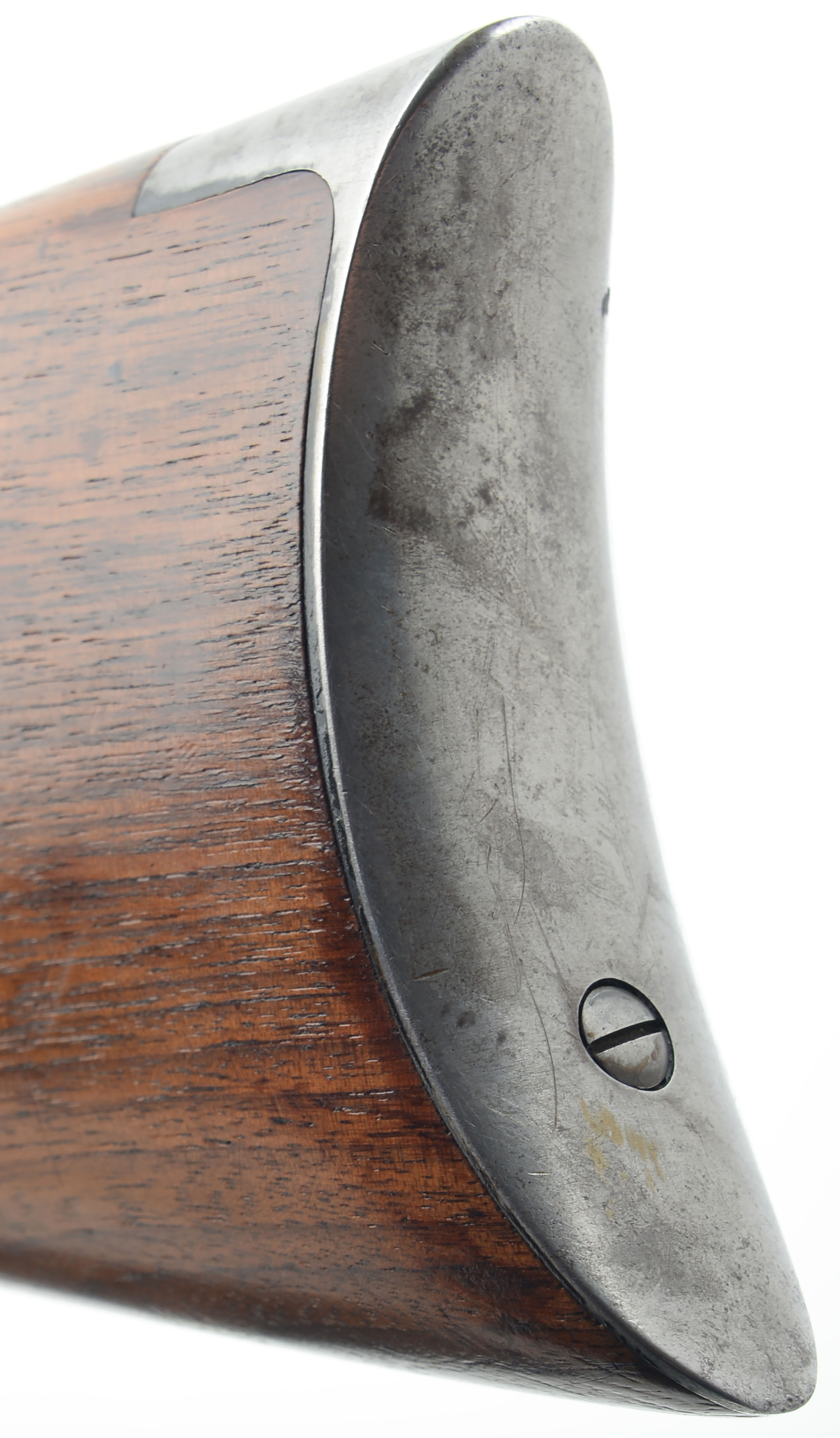 Winchester Model 95, CAL: 30 GOV'T-06, MFG: 1924, SN: 419851 Lever Action Rifle, 24'' round tapered barrel. The original straight grip wood stocks are excellent, as having been cleaned, possibly very lightly sanded, & excellently refinished. There are very few handling marks or minor contusions remaining. The factory metal blue finish rates 95% on the barrel, while the receiver has worn mostly gun metal gray, with protected areas displaying remnants of original blue. Bore is excellent. The rifle is fitted with a Climbing Lyman #21 receiver sight, while the barrel carries an adjustable rear sight & Marbles Sheard elongated blade front sight. Crescent metal buttplate. Tight smooth action. The rifle presents very well. FFL or C&R - Value: 2000 to 2750