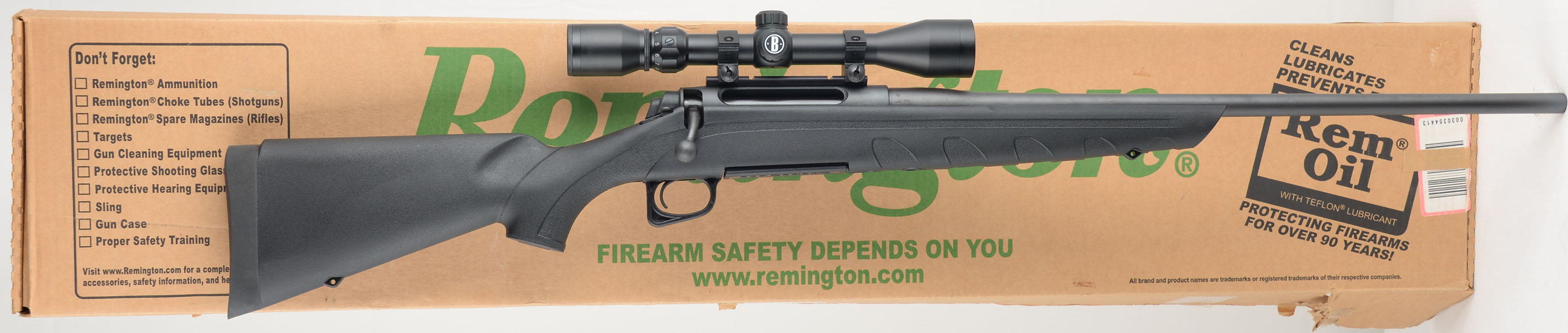BOXED Remington, Model 770, CAL: 30-06 SPRG, MFG: Modern, SN: M71575344, Bolt Action Rifle, 22'' round barrel, The original cheeked & capped pistol grip black synthetic stock is excellent. The factory satin black metal finish rates excellent overall. Bore is excellent. The receiver holds the factory mounted Bushnell 3-9x scope, while the barrel has no open sight provisions. Stock carries a Remington solid recoil pad. Detachable mag. Sling provisions. This rifle is basically New Old Stock (NOS) & comes with the original box, with paperwork, hang tag & lock. An overall excellent N.O.S. rifle. FFL Req. - Value: 300 to 500