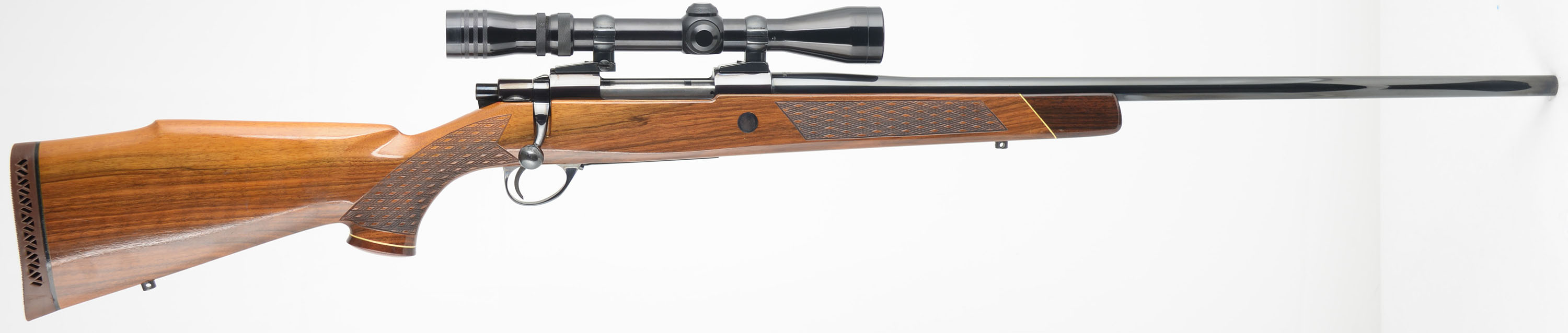Sako, Model Finnbear/L61R, marked Cal. 7mm Rem Mag, MFG. 1971 Finland, SN: 60153, Bolt Action Rifle, 24 1/2'' Round barrel, The original factory, skip-line checkered, flat pistol grip, & cheeked Monte Carlo wood stock is excellent & original. The stock features a slant cut rose wood forend tip & pistol grip cap. There are very few tiny handling marks or rubs to the excellent original finish. The original metal blue finish rates 95% overall, but with additional wear of thinning on the peg through the stock ahead of the receiver & on the floorplate, The receiver is toning a lovely plum. Fitted with a Redfield 3-9X scope, while the barrel has no provision for open sights. Bore is excellent, Stock carries a Sako ventilated recoil pad. Factory sling studs. These high quality Sako rifles are desirable amongst hunters & collectors. FFL or C&R Req. - Value: 1200 to 2000