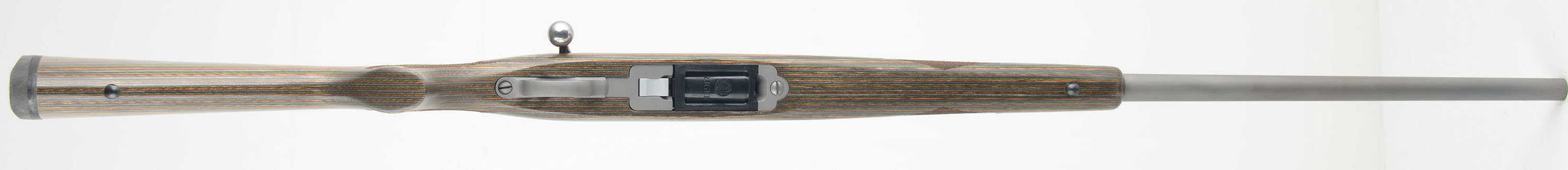 BOXED Ruger, Model 77/22, CAL: 22 Hornet, Stainless Target Grey, MFG: Modern, SN: 720-90720, Bolt Action Rifle, 24'' barrel. The original checkered & flat pistol grip laminated wood stock is excellent, with virtually no handling marks to the excellent original finish. Sharp checkering. The metal finish is a satin stainless gray & rates 99% overall. Bore is excellent. The receiver has integral scope mounts machined directly into the receiver, & comes with the factory scope mount rings for future scope mounting. No provision for open sights on the barrel. Buttstock carries a Ruger logo solid black rubber recoil pad. Sling studs. Factory detachable mag. This rifle comes from a closed gun shop where it was backstock inventory. It does not appear that the scope mounts were mounted or that it was shot, however it does have a couple of minor handling rubs on the barrel from in store handling. Basically, near new old stock, which comes in the original box, with factory paperwork, finish matching scope rings, & lock. MSRP is $1349. Excellent overall. FFL Req. - Value: 1000 to 1300