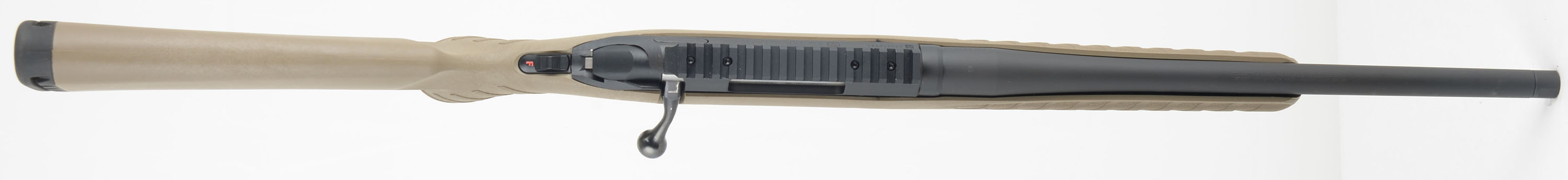 BOXED Ruger Model ''American'' Ranch FDE, CAL: .5.56 NATO, MFG: Modern, SN: 690316921, Bolt Action Rifle, 16 1/8'' Hammer-forged tapered barrel, with capped threaded muzzle tip for possible brake or silencer mounting. The original capped pistol grip, flat dark earth composite stock is excellent. The original matte black metal finishes are 99%+ overall. Bore is excellent. The receiver carries a picatinny rail, while the barrel carries no open sight provisions. Ruger Marksman adjustable trigger. Tang Safety. Black rubber recoil pad, LOP 13.75'' over pad. Ruger detachable extended mag. Swing studs. Comes in the original factory box, with packaging, paperwork & lock. Near new, excellent overall carbine length rifle. FFL Req. - Value: 400 to 600