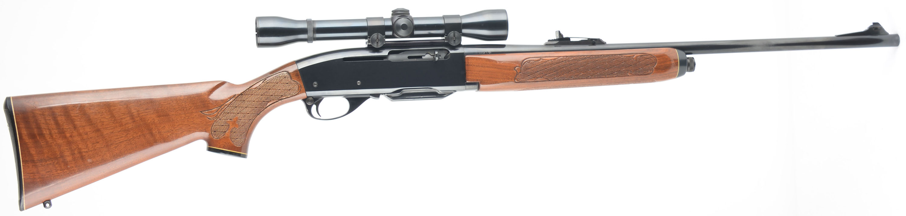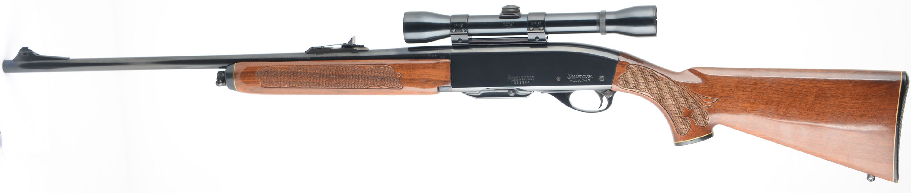 Remington, Model 742 Woodsmaster, CAL: 30-06 SPRG, MFG: 1968, SN: 363384, Semi Auto Rifle, 22'' barrel. The original checkered & capped pistol grip walnut stocks are excellent. There are some very minor handling marks to the excellent original finish. The original metal blue finish rates 99% overall. Bore is excellent. The receiver carries a Weaver K4-C3 scope mounted Weaver mounts, while the barrel holds factory sights. The stock caries the factory buttplate.. Detachable mag. Sling studs. Overall excellent & original condition. FFL & C&R Req. - Value: 600 to 1000