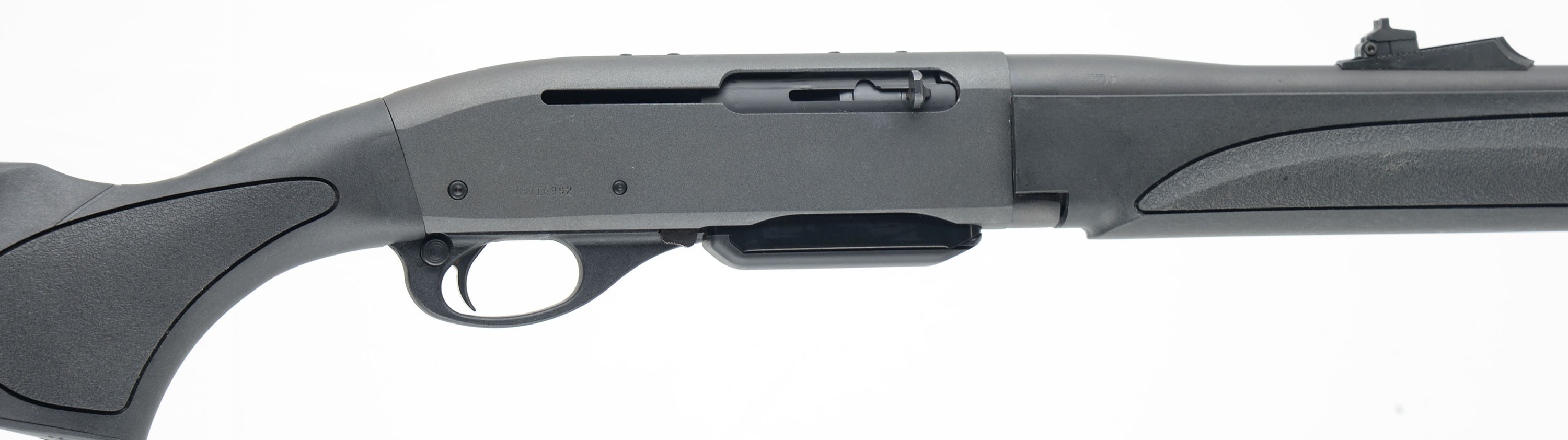 BOXED Remington, Model 750 Woodsmaster, CAL: 308 WIN, MFG: Modern, SN: D8016992, Semi Auto Rifle, 22 1/2'' barrel. The original flat pistol grip, black synthetic stocks are excellent, with textured grip panels. The original matte metal finish rates 100% overall. Bore is excellent. The barrel holds factory sights. Stock carries a Limb Saver rubber recoil pad. Comes in the original box, with a second detachable mag, still sealed in packaging, trigger lock & paperwork. Sling provisions. Overall excellent & original condition, FFL Req. - Value: 500 to 1000