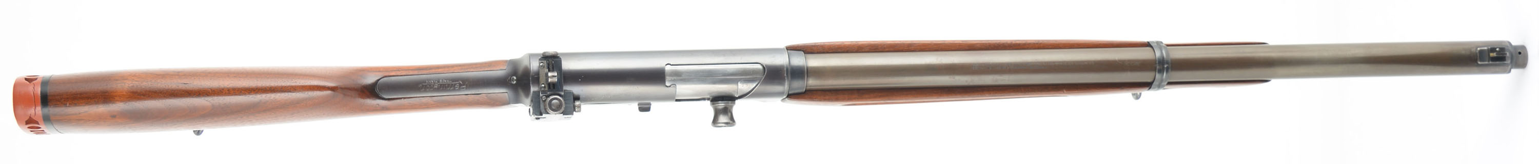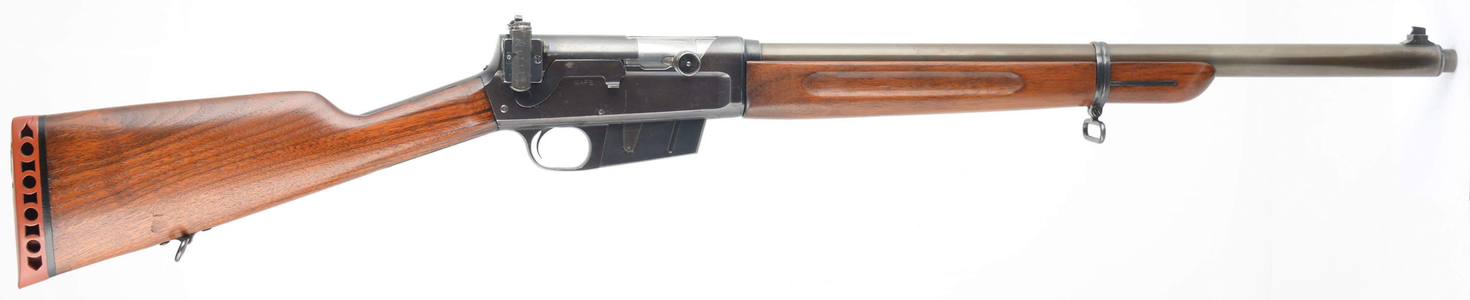 EXTREMELY RARE Remington, Model 8, TRIALS RIFLE, .25 Rem Cal, MFG. 1920, SN: 45616, Semi-Auto Rifle, 22'' barrel. This isn't just any Model 8, this one of the very Rare U.S. Trials models! In 1921, the Army Infantry School at Fort Benning received 25 Model 8 rifles chambered for .25 Remington. Warfare was evolving at the time, & the U.S. needed rifles to test the viability of a semi-automatic platform. While the model 8 was not developed nor intended for actual combat, these rifles were upgraded for testing & the development of tactics & military doctrine of a semi-auto rifle. The rifles were upgraded in collaboration with Springfield Armory with upgraded sights & a lengthened military style grooved forend with sling swivels. The barrels were provided without rear sight provisions, as the rear sight was to be the Lyman 48 aperture peep sight. The book ''The Great Model 8'' by John Henwood lists the serial range for these rifles as 42200 to 45737 for known examples. This one falls within the later portion of that range. The original straight grip stock & forend are excellent, with both appearing to have been lightly sanded & nicely finished. There remain very few tiny handling or wear marks, with the exception of one larger scrape/contusion just above the sling loop on the right side of the stock. The original metal blue finish on the receiver rates 70%, toning a bit plum as it thins. The finish on the barrel has evenly wore or simply faded to a thin brown patina. Bores on any Model 8 rifle in 25 caliber are rarely great for whatever reason, however the bore on this rifle maintains an excellent bore. The rifle carries the correct Lyman 48 aperture peep sight & the special customized tall blade front sight mounted on a raised base. The buttstock carries a vintage Red Duck ventilated recoil pad, which required a small wood inlay into the toe to fill the void where the lower tang would have been on the original crescent metal buttplate. The stocks carry the original sling loops which are unique to the trials rifle. 5 round fixed magazine. Tight action. This is a rare opportunity to purchase the rarest variation of the Remington 8 & 81 family, & the Holy Grail to enhance any Remington collection.* FFL or C&R Req. - Value: 10000 to 15000