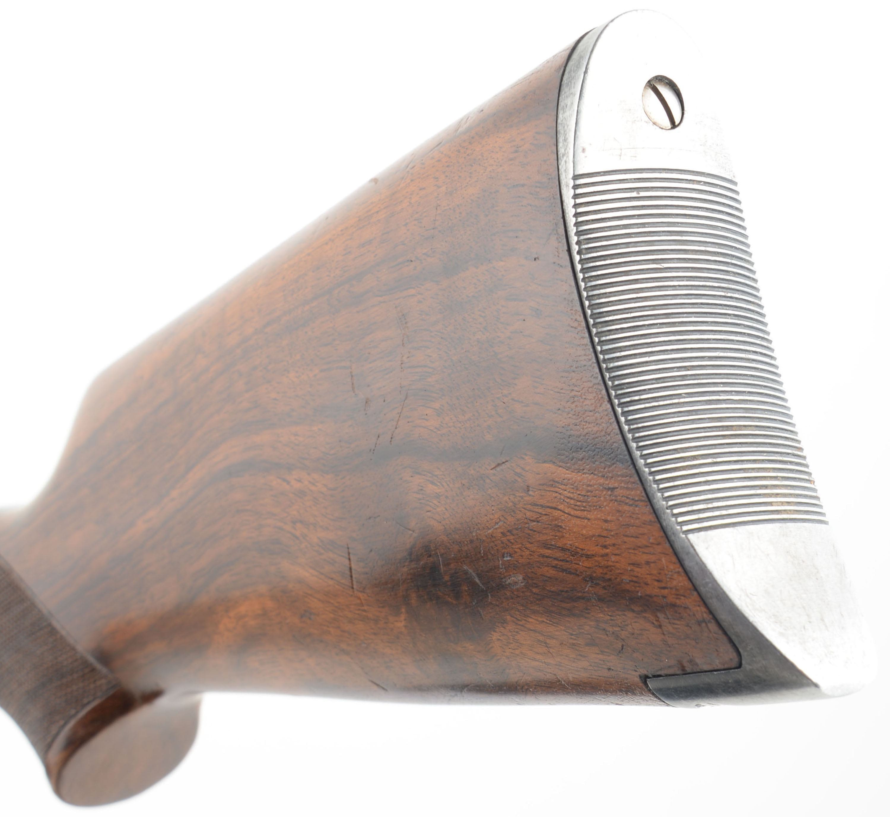 Remington, Model 8 ''C'' Grade (Deluxe), marked .32 Rem Cal., MFG: 1932, SN: 65991, Semi-auto take-down rifle, 22'' barrel, The original deluxe checkered & flat knob pistol grip wood stocks are excellent & solid. The inside of the forend is stamped with a 3 for grade ''3'' or ''C'' grade, & they display hand checkering cut at 20 lines per inch. This is a late production rifle & as a ''C'' grade, the stock still carries the cheeks at the wrist of the early production rifles. There are minor scrapes, scratches & contusions to the original finish, which also has a very thin layer of a protective added layer. The wood appearance is overall excellent. The original metal blue finish rates 95%, with the loss due to some density thinning on the safety, mag & lower tang. Some areas of the blue are starting to tone a lovely plum, which is typical of the late model 8 & early model 81 rifles. The barrel carries the standard adjustable rear & front sights. Bore is excellent, clean & bright. Stock carries the popular serrated lower tang crescent metal buttplate. 5 rd fixed magazine. Tight action. A rare & fantastic original ''C'' grade deluxe rifle, which is highly collectible. FFL or C&R - Value: 2500 to 3000