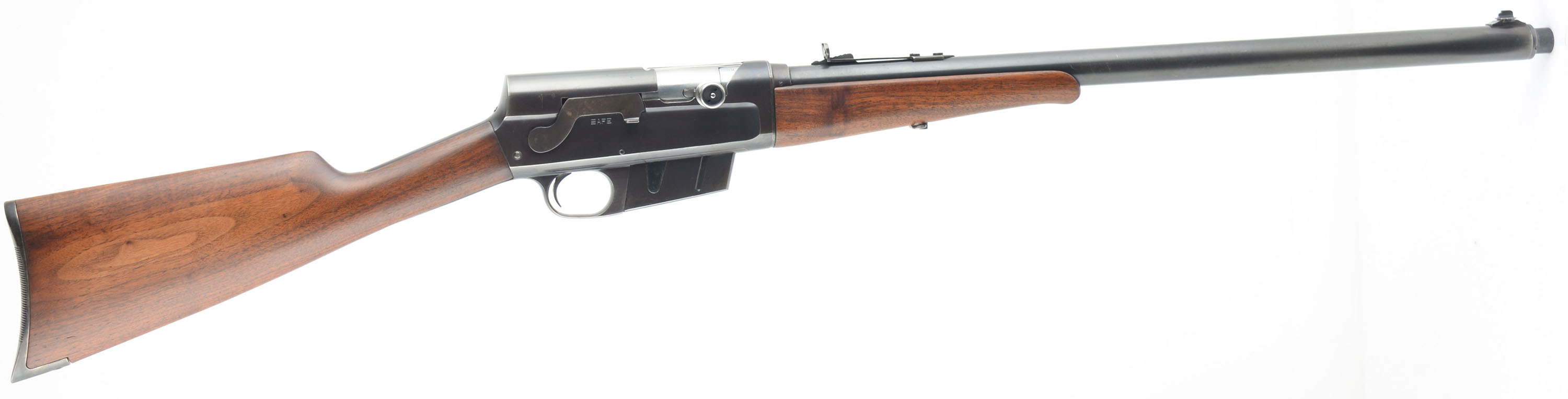 Remington, Model 8, .35 Rem Cal, MFG. 1926, SN: 52810, Semi-Auto Rifle, 22'' barrel. The original straight grip & schnabel forend stocks are excellent, having been cleaned, lightly sanded & an added layer of oil finish was placed over what remained of the original finish. There are still the remains of several minor scuffs, scratches & contusions to the wood & finish. The original metal blue finish rates 85% on barrel, 80% on the receiver, with the bluing toning a bit more to a plum brown on the receiver & mag. Bore is excellent. The barrel carries a standard adjustable rear sight & a Marble No. 6 blade front sight. Stock carries the bottom tang serrated crescent metal buttplate. 4 round fixed magazine. Tight smooth action. A very nice looking & good hunting rifle. FFL or C&R Req. - Value: 600 to 800