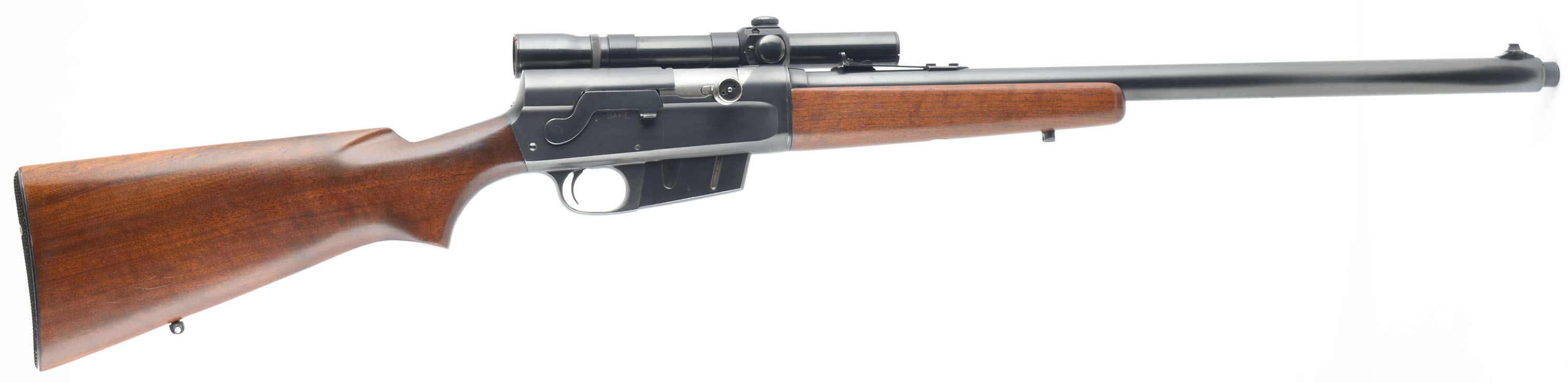 Remington, Model 81, 35 REM CAL, MFG. 1949, SN: 48923, Semi-Auto Rifle, 22'' barrel. The original flat pistol grip wood stocks are excellent & carrying the original finish, with a thin protective added layer. There are very few minor handling marks to the finish. The original metal blue finish rates 95% overall. The receiver is mounted with a Weaver K2.5 scope on Weaver mounts, while the barrel carries standard rear & front sights. Bore is excellent. Stock carries the Remington checkered metal buttplate. 4 rd fixed magazine. Sling studs in wood. An excellent condition rifle nicely set up ready for the hunt. FFL or C&R Req. - Value: 800 to 1200