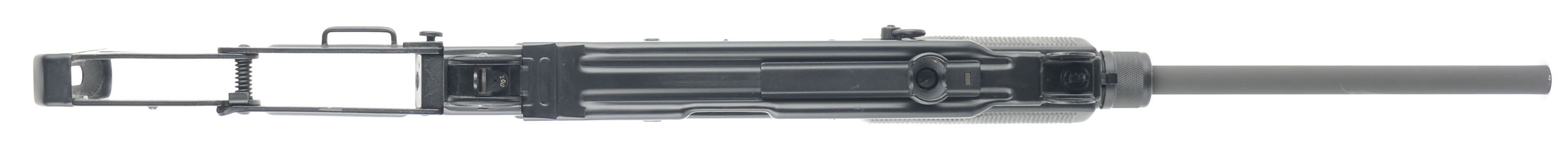 CONDITION: The grooved black polymer pistol grip & foregrip are excellent with a couple minor scuffs & light handling wear. Metal folding buttstock. The parkerized finish on the barrel rates 98% with a minor scuff. The black paint finish on the rest of the metal rates 97% with a few light scratches. The left side of the receiver is marked ''VECTOR ARMS. NSL. UT'', the rear left side of the receiver is marked ''HR4332S'', ''9mm/45 ACP/ 22'', ''GROUP IND'' in their logo, ''LOU KY 40214''. The right rear side of the receiver is marked with the S/N. The bore is excellent. The receiver holds a adjustable post front sight with protective ears, & a non-adjustable, aperture flip up L sight with 100 & 200 meter positions. The folding buttstock has carries no buttplate, but the shoulder end is grooved for better control. The gun appears to be in full working mechanical order. Comes with a 3'' dummy/display barrel, it is solid all the way through & is basically a barrel blank. It does mount to the gun, but it will not function with the firearm & is only for display purposes. Does not come with a mag. FFL Req - Value: 1200 to 2400