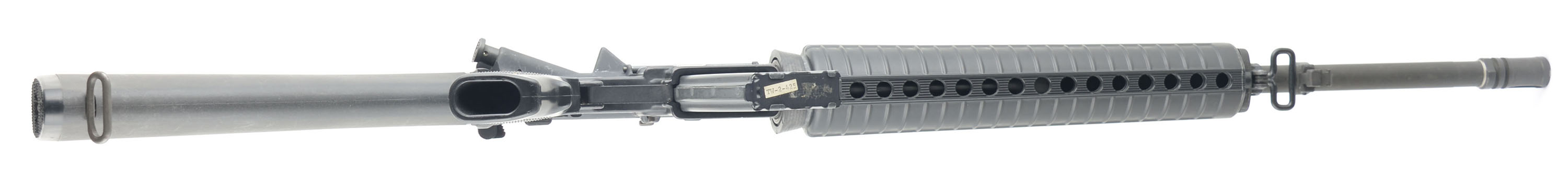 Pac-West Arms (PWA), Model: Commando (M16A2 configuration), Cal: 5.56 x 45mm, MFG: Early-Mid 1980s, S/N: 29680, Semi-auto rifle, 20'' barrel. The M16A2 style polymer buttstock, pistol grip & handguard rate very good to excellent with scuffs & scratches from use. More concentrated scuffs & scratches on bottom of pistol grip & the end of the handguard. The gray parkerized finish on the barrel & upper receiver rates 92% with scuffs, scratches, paint transferring scratches, & wear from use. The black paint finish on the lower receiver rates 95% with a few minor scuffs & scratches from use. The bolt release sends the bolt forward with any sharp jolt to the firearm. There is some light rust spots inside the chmaber & on some other steel compentes from being in stoarge without cleaning for a time. The bore is excellent, its bright & shiny with minor wear from light use. The rifle holds the standard M16A2 sights with a elevation adjustable post front sight with protective ears on the gas block. The receiver carries a M16A2 fixed carry handle with a fully adjustable aperture rear sight. The buttstock has a checkered black plastic buttplate with a trapdoor for cleaning supplies, nothing inside the trapdoor. Rifle has both bottom sling loops, has the bayonet lug, & comes with one aluminum 30 Rd. magazine. FFL Req. - Value: 1000 to 2000