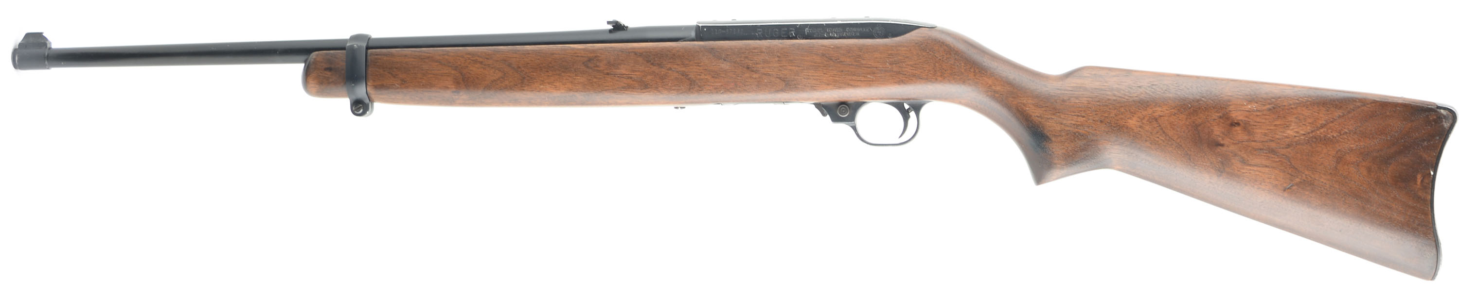 Ruger, 10/22, CAL: 22 LR, MFG: 1971, SN: 110-67282, Semi Auto Rifle, 18 1/2'' Barrel. The factory Ruger wood stock is very good with some handling wear and dings. The black finish on the receiver, butt plate, and barrel is good with some wear flaking. Bore is excellent, the rifling is bright and strong. Mechanically solid, seems to function well. A flip up elevation adjustable rear sight and fixed front sight are set in dovetail cuts on the barrel. Comes with a 10 round Ruger 10/22 magazines. FFL or C&R Req. - Value: 200 to 600