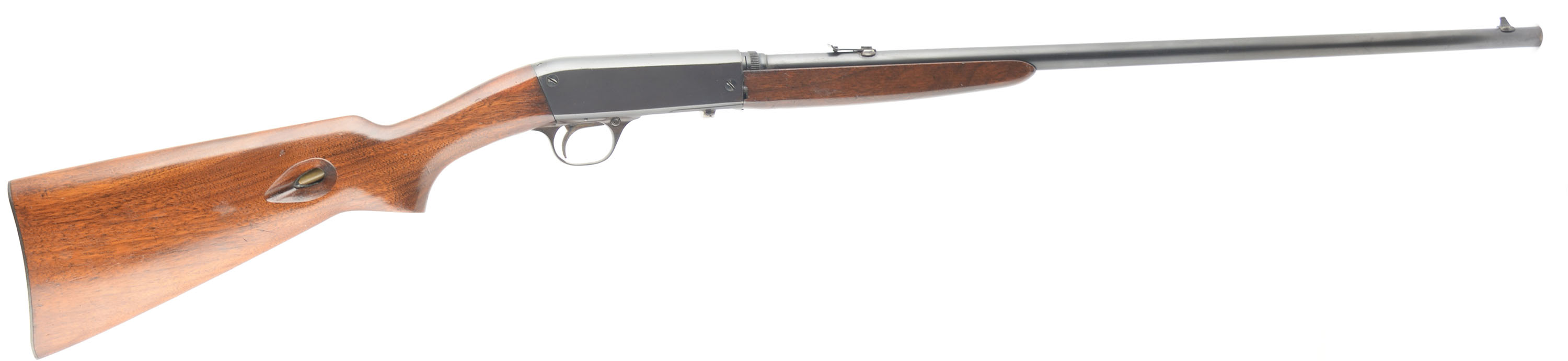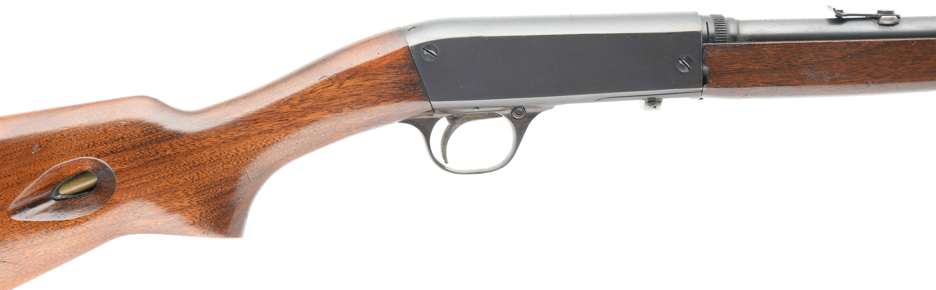 Remington, Model 24 Take-down, Marked .22 LONG RIFLE ONLY Cal., MFG 1922-35, SN: 127464, Semi Auto Rifle, 21 1/4'' round barrel. The original wood stocks are excellent, with minor contusions, nicks & scrapes to a combination of the original finish & an added thin layer of finish. The original metal blue finish on the barrel rates 90%, while the receiver finish rates 80%. Side of receiver & barrel are stamped with matching SN's. Bore is excellent & bright. Fitted with the original metal buttplate. Original factory sights. A fun to shoot semi-auto rifle. FFL or C&R Req. - Value: 300 to 600
