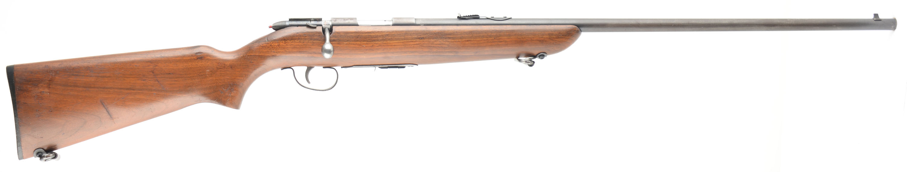 Remington, Model 511 Scoremaster, 22 S. L. LR, MFG: 1939-62, SN: NONE, Bolt Action Mag Fed Rifle, 25'' round tapered barrel. The original flat pistol grip stock is excellent, with several minor surface scrapes, scratches or contusions to the original finish. The original metal blue finish has worn or toned mostly to a thin brown patina. Bore is excellent. Fitted with standard open sights. The stock carries the original buttplate. Sling loops. ''Remington'' marked detachable mag. FFL or C&R Req. - Value: 200 to 400