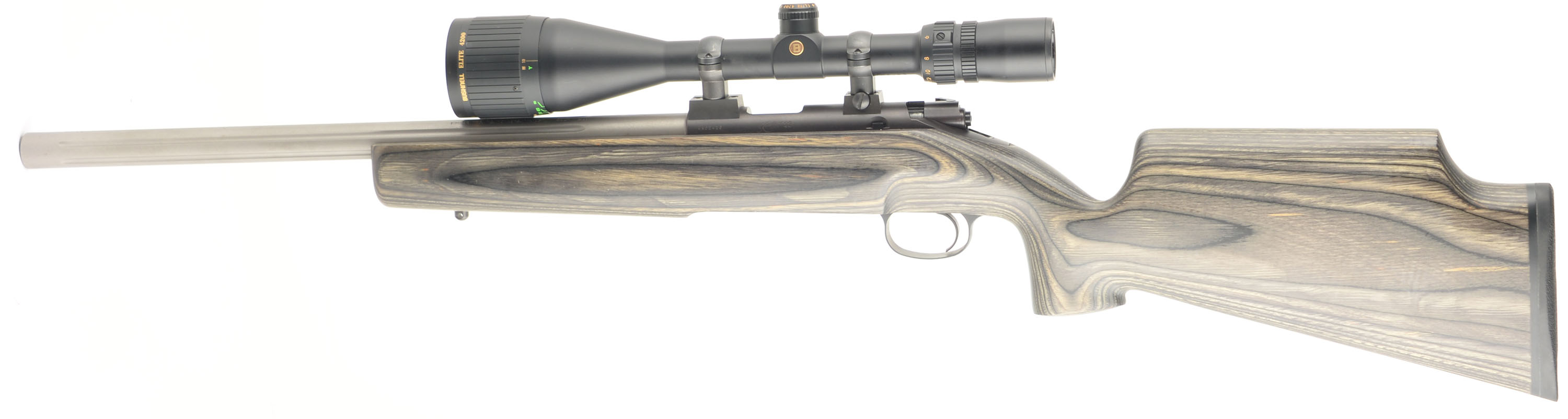 Kimber, Model 22 SVT (Short Varmint/Target), CAL: .22 LR, MFG: Modern, SN: KA02416, Bolt Action Rifle, 18'' Heavy stainless steel fluted bull barrel. The left side of the receiver is marked ''Kimber 22''. The left side of the barrel is marked ''KIMBER MFG. INC. YONKERS, NY. USA 22 LR SVT''. The original flat pistol grip & high comb, gray laminated wood stock is excellent, with excellent original finish. The original metal finishes on the barrel & receiver are excellent, rating 99%+. Bore is excellent. The receiver carries a Bushnell Elite 4200 on integrated scope blocks, while the barrel has no open sight provisions. Stock carries a Kimber solid recoil pad. The LOP measures 13.75''. Detachable ''Kimber 22'' marked 5 rd magazine. Sling stud. An overall excellent & high quality Varmint/Target rifle. FFL Req. - Value: 800 to 1200