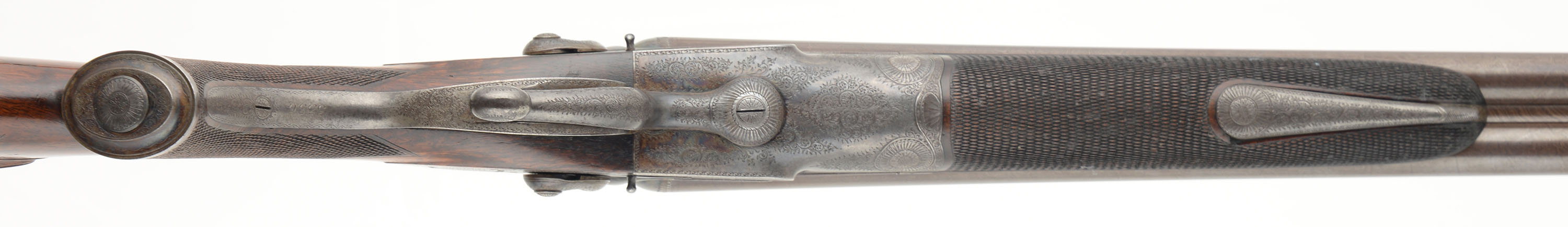 MARKINGS: The top of the barrel rib is marked ''ALEX.R.HENRY EDINBURGH AND LONDON. MAKER TO THEIR ROYAL HIGHNESS' THE PRINCE OF WALES AND DUKE OF EDINBURGH''. Both side plates are marked ''ALEX.R. HENRY''. The SN is marked on the lower tag & on the water table. There are various proof marks & factory markings on the barrel/water table.