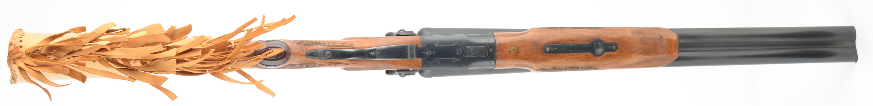 Tula - USSR (Universal Sporting Goods), TOZ-66, CAL; 12GA, MFG: 1970's-80's, SN: P8964, Break Action SxS Shotgun, Choke: IC/M, 2 3/4'' Chamber, 20'' barrels. Standard markings on the barrels. The checkered, capped pistol grip stocks are excellent. There are minor handling marks & dings to the finish. Both sides of the receiver display a pointer & two ducks, with ornamental accent engravings. The metal blue finish rates 95% overall. Bores are excellent. The solid matted rib holds a single front bead. Stock has a padded leather cover, with recoil pad underneath. Double triggers. LOP: 15 3/4'' overpad. Mechanical operation appears to function properly.